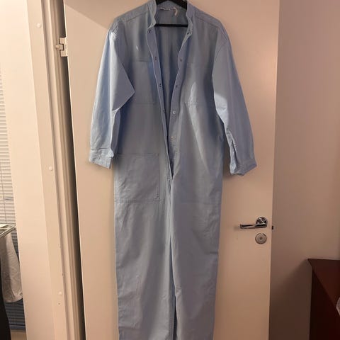 Mummolan kätköistä löytynyt Vuokon haalari. Väri on "terracotta", katso kuva 3. Haalarissa on kolme taskua etupuolella sekä nepparikiinnitys. Mukana on vyö. Koko on XS, mutta saattaa olla ihan hyvä myös S-kokoiselle. Otan pyydettäessä mittoja. Materiaalina on 100 % puuvillaa, ja konepesu onnistuu 60 asteessa.