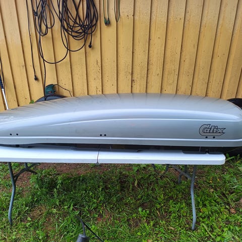 Calix suksiboksi mitat n.220cmx80cmx20cm (340L). Aukeaa molemmilta puolilta.