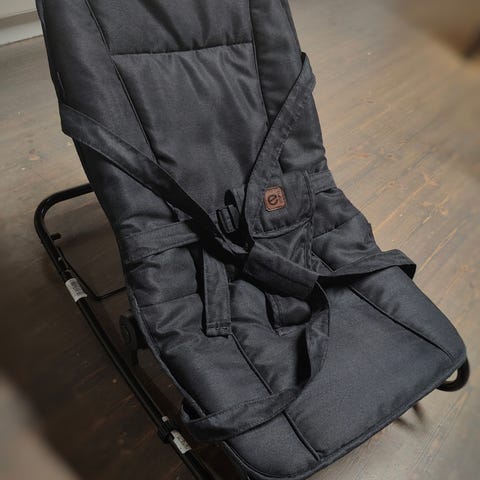 Emma keinuva sitteri, jossa beige kangas ja säädettävä turvavyö. Kallistus säädettävissä. Myydään pestynä, siistissä kunnossa.