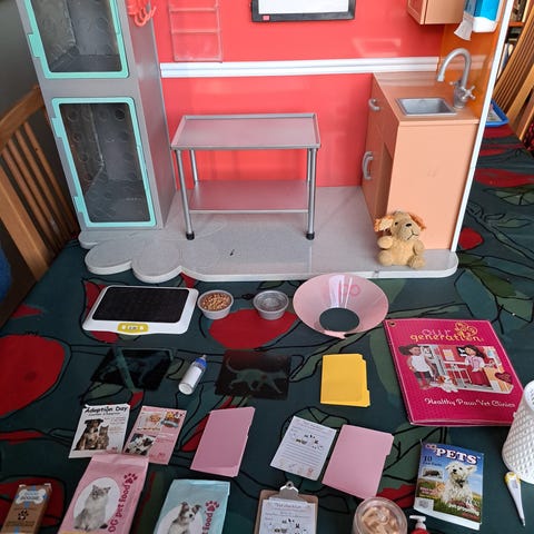 Lasten eläinlääkäri/lastenlääkäri setti. Soveltuu lasten leikkeihin ja roolipeleihin. Yhdellä leikkijällä ollut, pientä leikinjälkeä löytyy. Syöttötuolin yläosassa pieni halkeama, ei haittaa käyttöä. Mitat korkeus n 84cm,leveys n.75cm syvyys n.30cm. 15euroa tai tarjoa. Nouto Kouvolan Tornionmäestä suurehkon koon vuoksi.