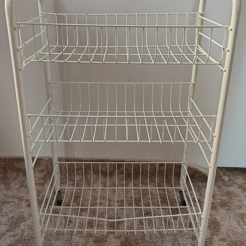Myydään valkoinen kylpyhuoneen hylly pyykinpesukoneen päälle. Alimman hyllyn korkeus 88 cm.
