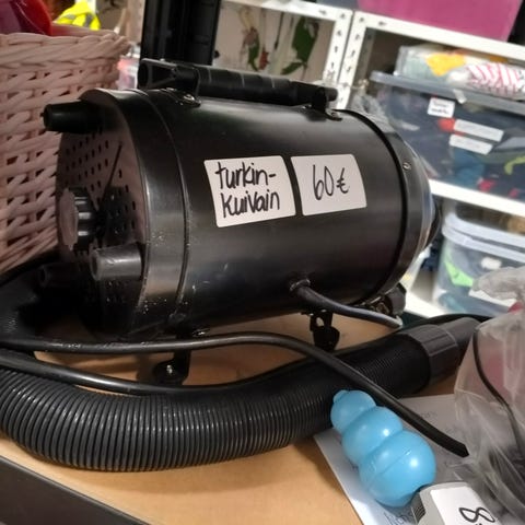 Ostettu meille uutena. Käytetty yhdellä ja välillä kahdella koiralla, mutta viimeiset pari vuotta ollut käyttämättömänä. Myydään, koska tälle ei ole enää käyttöä. Todella hyvä ja tykätty kuivain. Toiminut hyvin ja ollut luotettava, ei ole ollut mitään vikoja. Olen käyttänyt lähinnä kuivaimessa kiinniolevalla muoviputkella, jolloin molemmat kädet saa vapaaksi. Joustava letku ja sen päät ovat käytännössä käyttämättömät. Lisäksi mukaan tulee alkuperäiset ohjepaperit sekä ylimääräiset karkeasuodattimet.