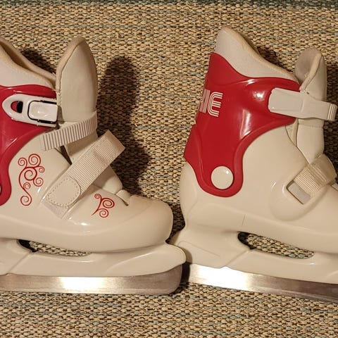 Rookie lasten luistimet. Koko on 31-33, eli luistimen kokoa voi säätää. Kätevä, kun luistin sopii lapselle useamman talven.