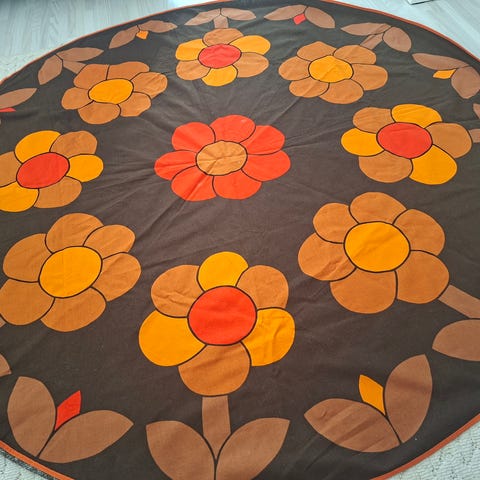 Vanha siistikuntoinen pöytäliina halkaisijaltaan noin 139cm.