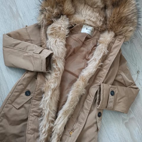 Kenneth Colen upea, käyttämätön naisten talvitakki kokoa M. Sisätaskut molemmilla puolilla kännykälle ja kynille tms. Pituus 70 cm.