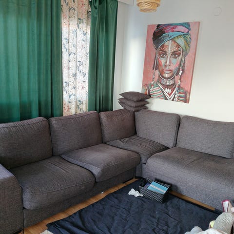 Lähes uudenveroinen kulmasohva. Ei kulumaa / tahroja havaittavissa.