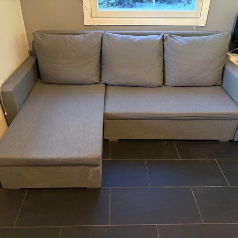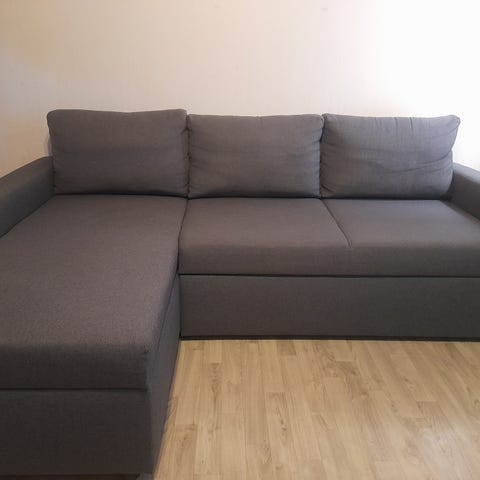 Sotkasta ostettu divaanivuodesohva, tummanharmaa.