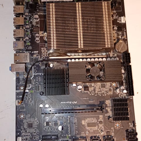 Matx Emolevy 10 sukupolven prosessoreille. Hyvin pelittää ja uusin BIOS asennettu. Yksi jäähdytyslevy puuttuu ylemmistä mosfeteista, mutta en oo huomannu lämpöjen nousua ainakaan i5 10600k prosessorilla.