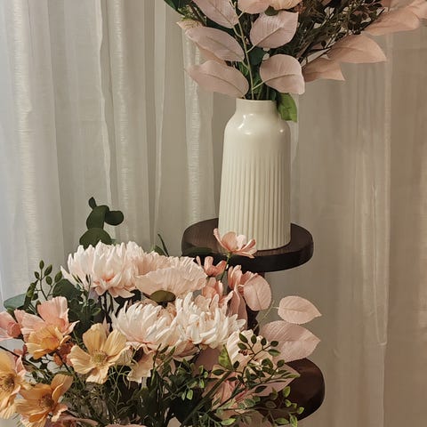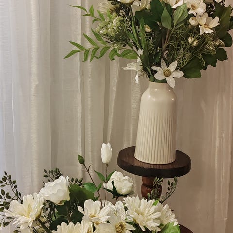 Kokoa kimppu omannäköiseksi asetelmaksi maljakkoon.