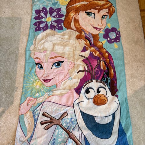 Myydään lasten Frozen-kylpypyyhe.