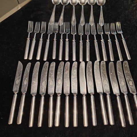 Vanhat sorsakoski aterimet veitset ja haarukat molempia kuusi kpl. Tummuneita mutta muuten hyväkuntoisia. Vain nouto