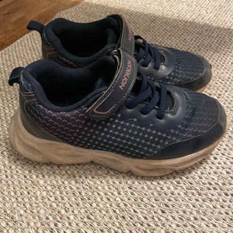 Annetaan yhden lapsen käyttämät lenkkarit. Tykätyt, paljon käytetty, kulumaa on.