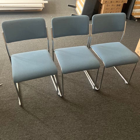 Tuoli metallijaloilla ja sinisellä istuimella 3 kpl