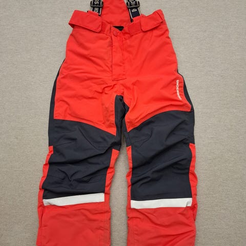 Siisti, yhdellä lapsella osin haalarin ohella käytetty kunto. Polvissa vähäistä normaalia pintanaarmua. Lahkeensuussa kulumaa ja toiselta puolelta paikattu pikku naarmu. Nimikoitu leimasimella merkkilapun taakse. Hyvät ja kestävät housut.