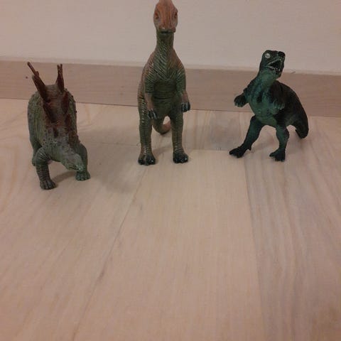Kuvan dinosaurukset myydään kerralla pakettina. Nouta Helsingistä Länsi-Pasilasta.