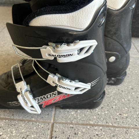 Salomon T3 lasten laskettelumonot, koko 22 /266mm, vastaa n. kengän kokoa 36-36,5. Myydään pikkurahalla, koska yhdessä soljista murtuma, solki toimii: menee kiinni ja pitää yhtä vahvasti kuin ehjä, mutta saa olla varoivainen avatessa ja sulkiessa. Värit valkoinen ja sininen. Monot on varustettu kolmella soljella ja ne on suunniteltu lapsille laskettelukäyttöön. Vielä viime vuonna oli käytössä aktiivisesti, mutta tänä talvena jäivät pieneksi.