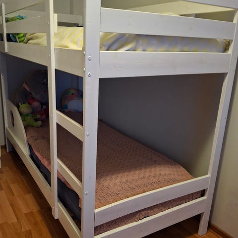 Myydään Liisa pieni kerrossänky. Käytön jälkeä. Mukaan saa halutessaan 09/2021 ostetut patjat. (Patjojen päällä ollut aina vuodesuojat)