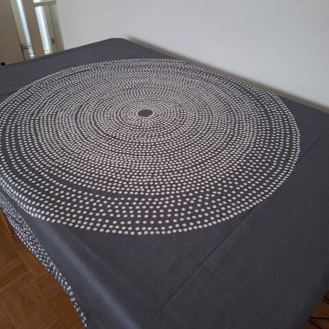 Itse tehty Marimekon kankaasta. Koko: leveys n. 135cm, pituus n. 168cm.