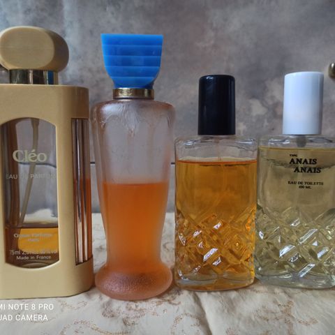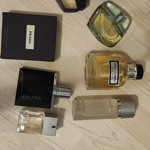 Vanhat hajuvedet. Laadusta ei takeita, osa tyhjiä ja yksi pullo poissa. Muutamia kymmeniä vuosia vanhat.