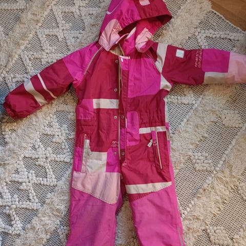 Reiman kahdella lapsella käytetty toppapuku, koko 98. Haalarissa käytönjälkiä (lisäkuvat). Pitänyt silti lapsen lämpimänä ja kuivana, sopii vielä siis ”rymykäyttöön”.