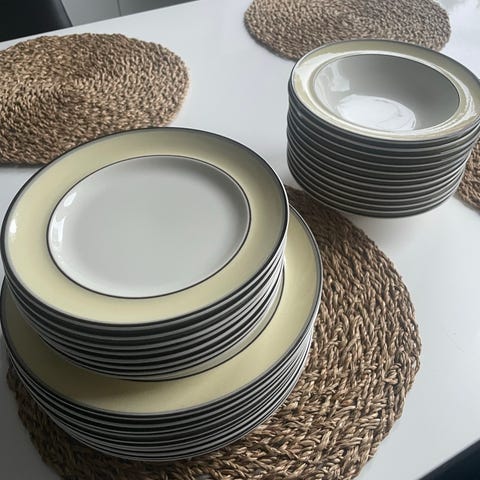 Paketissaan olevat, käyttämättömät leipälautaset / asetit / matalat lautaset.