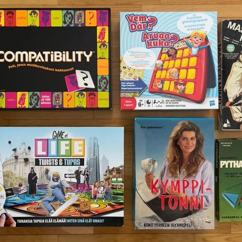 Myydään hyväkuntoisia lautapelejä / perhepelejä / seurapelejä. Peleissä kaikki osat mukana, myös ohjeet (kunkin pelin kohdalla mainittu, mikäli jotain huomautettavaa). Pelilaatikoissa voi olla kulumaa.