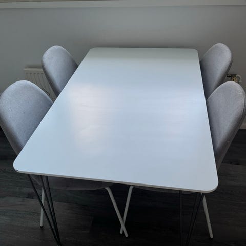 Yleisilmeeltään siisti ikean ruokaryhmä. Kaksi tuolia, joissa ei moitteita ja pienehkö pöytä, jossa hieman likaa. Pehmusteet saa mukaan. Ne ovat melko kuluneet.