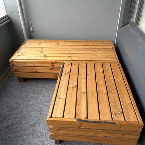 Käsintehty kulmasohva parvekkeelle, terassille tms. valmistettu eurolavoista. Hyväkuntoiset vuosi sitten ostetut pehmusteet. Mukavat istua.