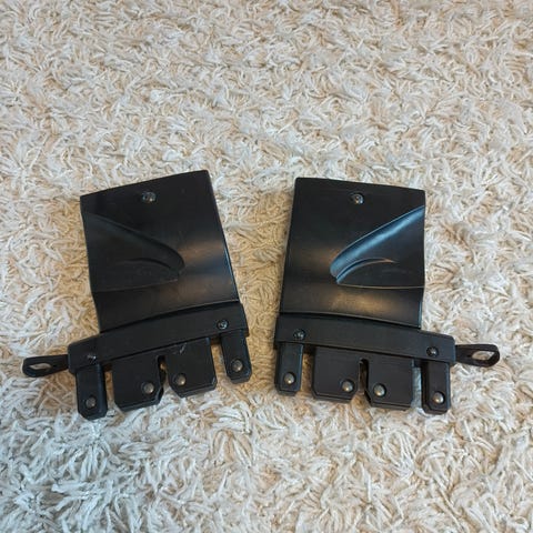 Emmaljunga nxt 90 ja Britax adapteri, musta muovimateriaali, käytettävä lastenrattaiden lisävarusteena. Sopii vanhan mallin kanssa