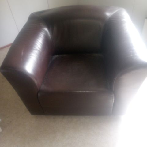 Musta tekonahkainen istuin ja selkänoja. Tuolissa on puujalat ja metalliset tukirakenteet. Istuinmuotoilu tarjoaa ergonomista tukea. Mukava istua!