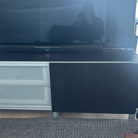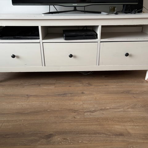 Ikean valkoinen tv-taso. Pientä jälkeä pinnassa, näkyy kuvassa. Muuten todella hyvässä kunnossa.
