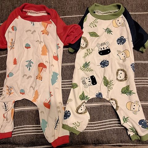 Punainen pienen koiran haalari, jossa on kukkakuosi. Siistikuntoinen, vuori sisäpuolella. Ollut käytössä vain pari kertaa, hiukan liian lyhyt pitkäselkäiselle (2,5 kg) koiralle.