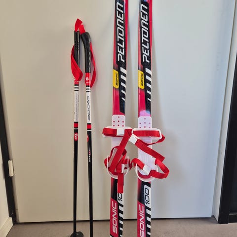 Edsbyn lasten ensisukset 100 cm ja sauvat.
