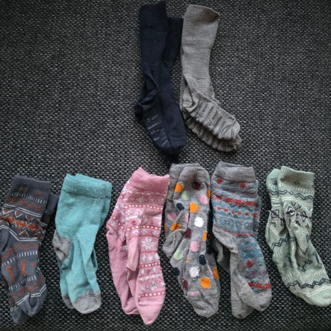 Siistissä käytetyssä kunnossa olevat Popin sukat koko 25/27. Yhteensä 9 paria. Lisäksi 6 paria (joista yksi eripari) paljon kuluneita kaupan päälle. Hinta kaikista yhteensä. Nouto Ylämyllyltä. Postit ostajalle. Koiratalous. MMM.