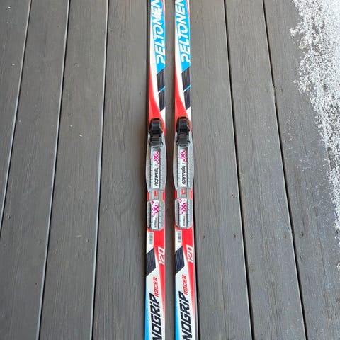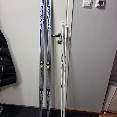 Annetaan lasten murtomaasukset remmikirityksillä. Käytön jälkiä näkyy. Sauvat eivät kuulu pakettiin. Sopii ensisuksiksi hiihdon kokeiluun.