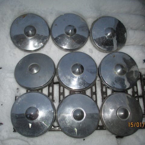 Kuvan kapselit 4 kpl.. Tulee 12" vanteeseen. Ulkokehämitta 23,8 cm ja kiiinnityskehä 22,8 cm.Melko hyvät