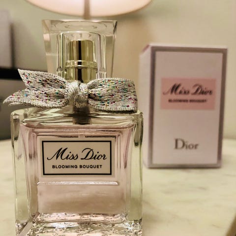 Dior Miss Dior Blooming Bouquet Eau de Toilette 5 ml pullo. Tuoksu on valmistettu Ranskassa ja pullo on lasia, jossa on koristeellinen kansi ja nauha. Tuoksu on kevyt ja kukkainen.