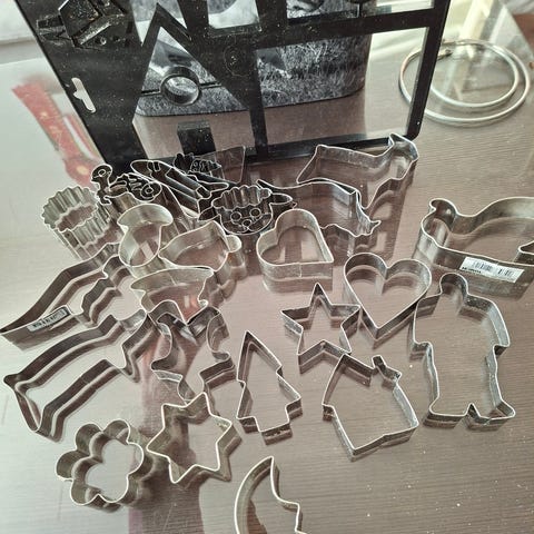 Piparkakku muotteja, myös talomuotti. En erottele eli kaikki samalla.