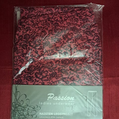 Napakan tuntuista puuvillaa, lantiolla tavallista enemmän "tilaa" verrattuna suoran mallisiin legginseihin. Uudet, hintalappu 22 €.
