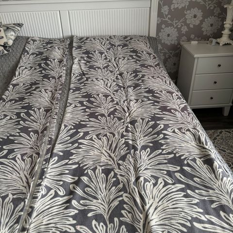 Sivuverhot ja kappaverho. Laadukkaasta kankaasta teetetyt verhot, Sivuverhot mitat:leveys 140cm, pituus 240cm. Kappa mitat: korkeus 60cm, pituus 200cm. Verhojen väri tumma harmaa, missä valkoinen köynnöskuvio. Sivuverhoissa sekä kapassa kaksi erisuuruista tankokujaa (kuvattuna)valittavana oman tangon leveyden mukaan. Kiinnitys toki myös verhonipsuilla tai muulla tapaa onnistuu. Verhoissa ei ole rypytysnauhaa. Kangas kuultaa jnknverran valoa läpi( kuvattu). Kaikki sivut ommeltu, ompelutyö verholiikkeessä. Verhot kunnoltaan uudenveroiset, moitteita en niistä löydä. Kaupat: Nouto/ maksu käteinen. Tai postitus, jolloin postimaksu lisätään hintaan ja maksu tilisiirtona. En käytä Mobilepayta enkä ToriDiiliä.