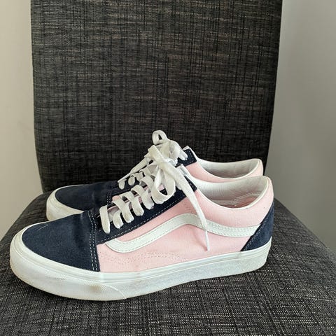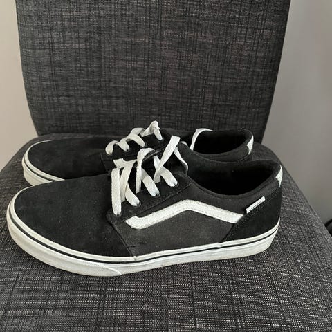 Pidetyt Vans-tennarit, koko 38. Mustavalkoiset. Repeämä oikean kengän reunassa, katso kuva (ei haittaa käyttöä).