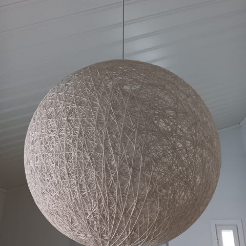 Valkoinen kattovalaisin. Valkoinen osuus on kevyttä muovia. Pientä käytönjälkeä, ei ole häirinnyt käytössä.
