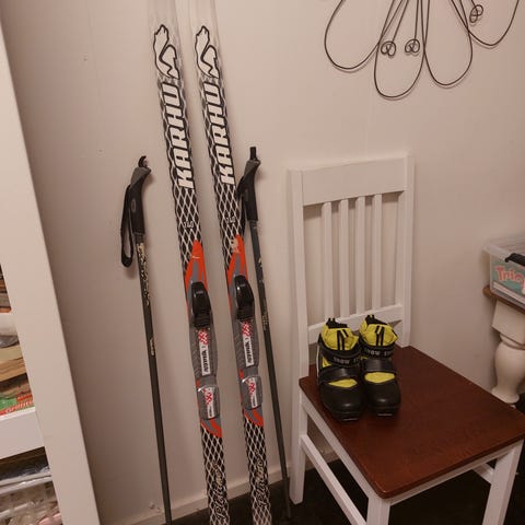 Sukset Karhu 100 cm pitopohjalla, sauvat ja monot mukaan pakettiin löytyy koot 26,27,29,30
