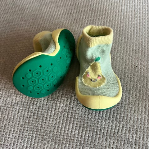 Komuello sukkatossut ovat mukavin ja mitä parhain jalkine pienelle ihmiselle. Taipuisa ja kevyt hengittävä pohja ja muuten sukkamainen päällinen ja varsi sujahtaa nopeasti jalkaan ja istuu siinä kuin ihan kuin sukka. Nämä sukkatossut ovat uutena ostetut ja yhdellä lapsella olleet käytössä. Kunnes jäivät pieneksi.