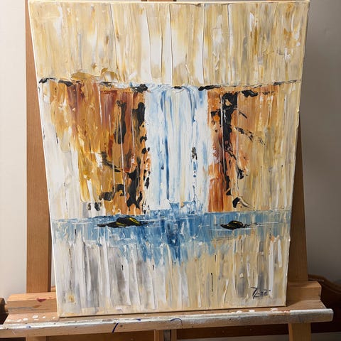 Abstrakti maalaus, maalattu canvas taulupohjalle.
