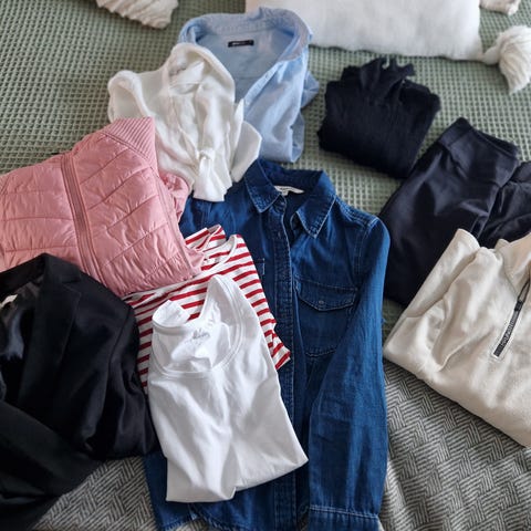 Alla tarkempaa kuvausta vaatteiden kulumista tai virheistä. Muissa ei käytönjälkiä.