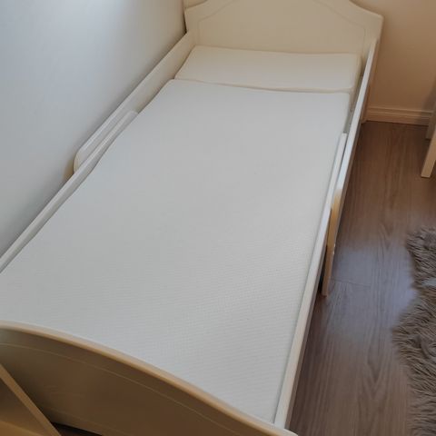 Myydään siisti ja ajaton Emma jatkettava lastensänky sekä sängynaluslaatikko (kuuluu sänkykokonaisuuteen) – kätevä lisäsäilytykseen! Sängystä löytyy joitain käytön jälkiä. Nämä näkyvät yhdessä kuvassa.