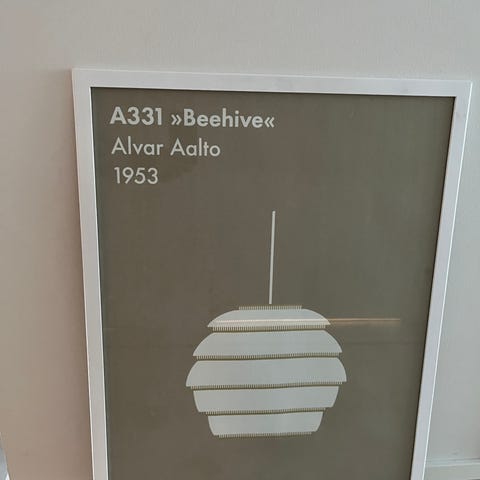 0,3mm paksu Dibond alumiinikerroslevy, jonka taakse on liimattu kiinnikeet (1x1cm u-lista). Käytetty meillä Artek 75 julisteen pohjana, josta juliste otettu nyt pois. Voidaan ripustaa joko pysty- tai vaakasuuntaan.