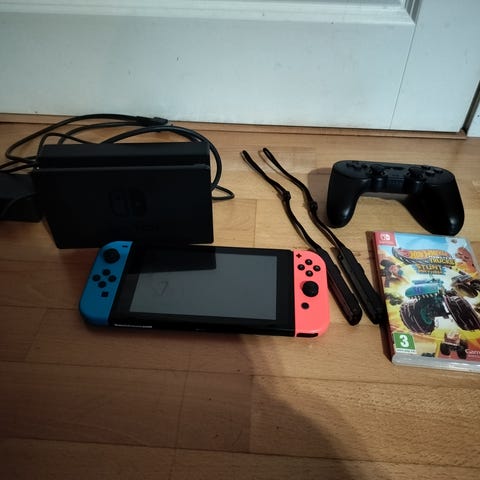 Myydään iso Switch paketti. Konsoli toimii moitteettomasti. Ohjaimet toimivat täydellisesti. Ei analogi tatin driftausta. 128gb muistia.