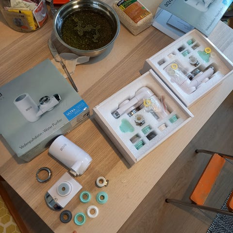 Keittiön hanaan suodatin. Puuilosta ostettu. Tämä on käyttämätön ilman suodatinta, eli se ostettava esim puuilosta. Helppo asentaa.